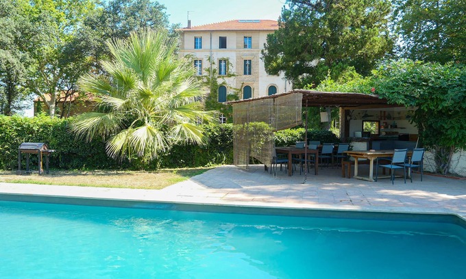 Chateau in magnificent park with swimming pool is located in Thuir. Chateau in magnificent park with swimming pool provides accommodation, featuring TV, Private Pool, Wellness Facilities, among other amenities. This Other features TV, Private Pool, Wellness Facilities, to make your stay a comfortable one.