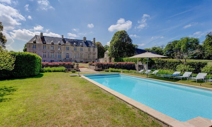 With style reminiscent of a miniature Versailles, this striking chateau in Normandy conjures the grandeur of the 17th and 18th centuries from the moment you approach it through the tree-lined driveway. The chateau effortlessly combines classic touches (from the stonework in the garden to the Aubusson carpets and even an original c17th backgammon set), with the modern amenities you expect, such as jetted tubs, Nespresso machine, widescreen TV (with Netflix and DVD) and the heated pool, to name just a few.
