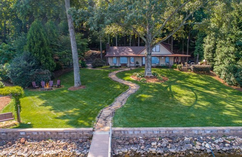Our Happy Place will make you happy too! Guaranteed to leave your troubles behind! Our 3 bedroom-2 bath home offers plenty of space for gathering of family and friends. With master on main that overlooks the lake and 2 bedrooms on 2nd level; one overlooks the lake, and the 2nd one has a beautiful view of our magical woods. All 3 bedrooms feature King size beds. The ground floor bath has amazing shower for two, and the 2nd floor bath has an oversized tub/shower with glass doors. The living space has an open airy layout, completely renovated with views of lake, mountains, and woods. Our Happy Place is a wonderful home that sits on 100 feet of beautiful Lake Chatuge shoreline. We have a large cozy private den with sofa/pull-out bed, with a Samsung flat screen TV that offers Netflix, You Tube TV, and Amazon Prime. High Speed Wi-Fi is available throughout the home and most of the property. This family home has beautiful views of Lake Chatuge from most every room, swim dock with swim ladder, gentle easy walk to lake, and an additional covered boat dock with power and water-bring your boat/jet ski and enjoy water sports and cruising the lake (or rent one from 3 nearby facilities). We also have a camp-fire pit for evening marshmallow toasting-s'mores over the fire pit will delight the kids (including the one inside you).