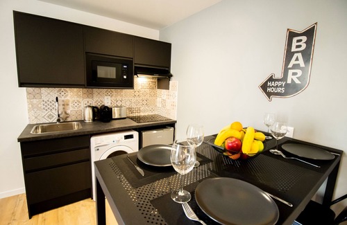 The kitchen is equipped with a stovetop, a refrigerator, and a dishwasher, as well as an electric kettle, cookware, and a toaster. Enjoy the free WiFi and TV. Bathroom amenities include a hair dryer, towels, and toilet paper. And because there's access to laundry facilities, you can go a bit lighter on your packing. Other amenities at this 1-bedroom, 1-bathroom rental include a sofa bed, an ironing board, soundproofing, and heating.