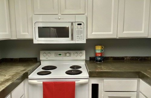 Bedrooms with blackout curtains make resting a breeze! Well appointed kitchen makes eating in easy and enjoyable.