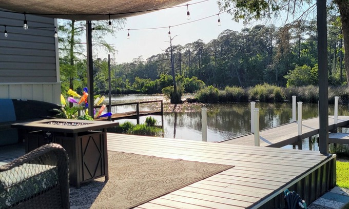 I am an Alabama girl who wanted water access and to be closer to the beach. I bought this little piece of land on Miflin Creek and graced it with a Mobile home. Miflin Creek leads to Wolf Bay and the Gulf. This is a quiet area where you can relax and get away from it all while still being close enough to anything else you want to do. It is 4.1 miles to OWA, 6.5 miles to Pirate's Cove, 11 miles to the Foley Sportsplex on Oak Road West, 11 miles to The Wharf, 14.1 miles to The Hangout Gulf Shores Beach, 14.8 miles to Cotton Bayou Orange Beach. I enjoy paddleboarding here or sitting on the deck watching the wildlife. It is quiet and peaceful. There are fishing poles, life vests, pedal boat, kayak, tandem kayak, and Jon boat available for free. I am a seasoned short term renter and I am available via phone, text or the app. I am happy to assist with any questions.