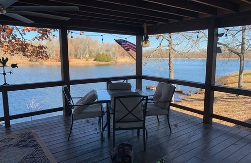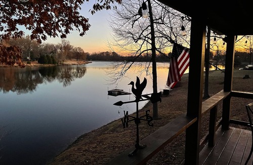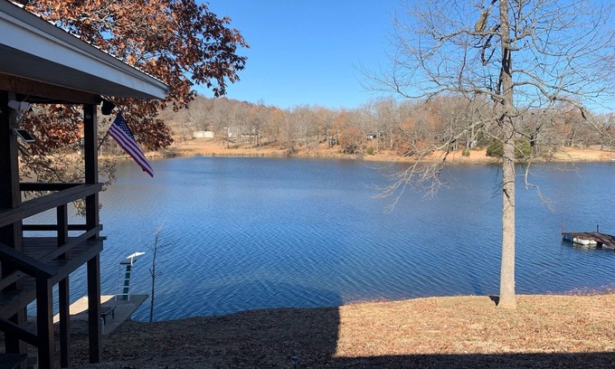 Experience the lake life with this 3 bedroom 2 bath home. You can kayak or canoe with the provided boats. Take time to fish or just take in the piece and quiet of the beautiful 20acre semi-private lake. Relax with the whole family on the back porch that overlooks the water. There is a 14’ Jonboat with trolling motor for use on the water (You will need a vehicle with a 2" ball to move the boat). After a fun day at the lake enjoy a nice fire at the firepit by the water to make more memories. The property has slopes to the lake and guests would need to be comfortable walk up stairs and slopes. Please note as of 7-1-23 the water level in the lake is low due to repairs being made to the dam.