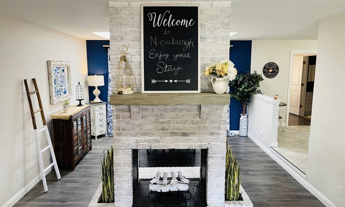 Enjoy a stylish experience at this centrally located home in Southern Indiana with easy and direct access to beautiful Newburgh/Evansville area! Bring the whole family to this great place with lots of room for fun. 4 bedrooms and 2.5 baths. 1 master with a private bathroom. 2 separate queen bedrooms with a shared full bath. And a bunk bedroom with a full and a twin mattress on top bunk. I also will leave a queen air mattress for guests to use.