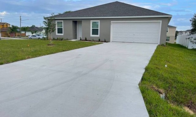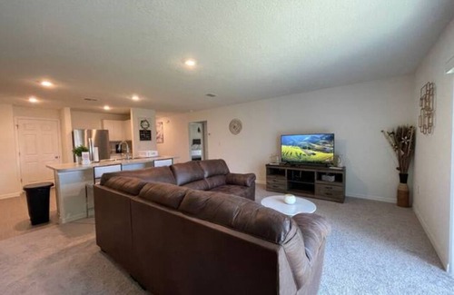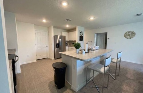 Beautifully decorated new construction house. The house is a welcoming and peaceful place to relax with the whole family. This house has it all and is located 19 miles from Legoland, 29 miles from Disney World, and 37 miles from Universal Studios. The 4 bedroom 2 bath home has a modern kitchen, Living room with 75inch TV and dining room.