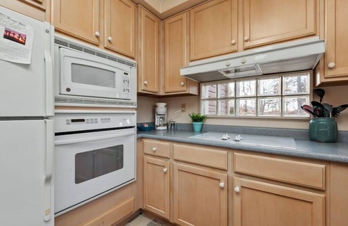The kitchen is fully equipped and ready for fresh cooked meals during your stay. Guests can use the refrigerator and stock with their own groceries. The electric flat-top stove and oven are professionally cleaned and ready for use.