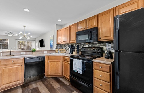 Cheerful Abode boast of an opened concept first floor living with a fully equipped kitchen, breakfast area for four and a living room . For added convenience, there is a half bath in the first floor as well. The second floor has Two good size bedrooms with attached en-suites. The master bedroom has a tastefully furnished King size bed and the secondary bedroom is equipped with a queen size bed.