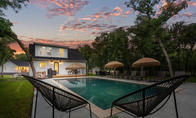 Best-rates for the Flatonia house starts from $544 per night with includes Kitchen, Laundry, Air Conditioner, Pet Friendly, Pool, Bedding/Linens, Internet, Private Pool, Child Friendly with all other amenities. Perfect for Weddings is committed to ensuring every guest experiences a comfortable and extraordinary stay, whether planning a romantic getaway, a honeymoon, a pet-friendly stay, or celebrating with the entire wedding party.