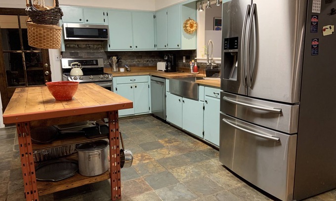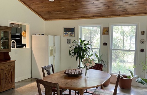 Relax with the whole family at this peaceful home, just a few minutes from the Square and the University. This 3-bedroom sleeps up to 8, is welcoming to well-behaved pets (with pet fee), and has board games and toys. It has lots of original art, a library of books, and a well-equipped kitchen for cooking. And it has a lush backyard and pool!