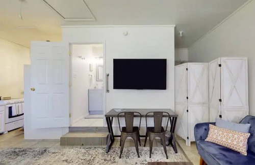 You'll love this beautiful studio apartment that is fully renovated. Perfect for couples looking for a cozy getaway, besties going on a girls trip, and travelers who need a comfortable and peaceful space to work. The studio features a walk-in shower, white noise machine for light sleepers, brand new mattress, quality linens, quality dishware, large coffee mugs, real wine glasses, complimentary coffee, popcorn, and more.