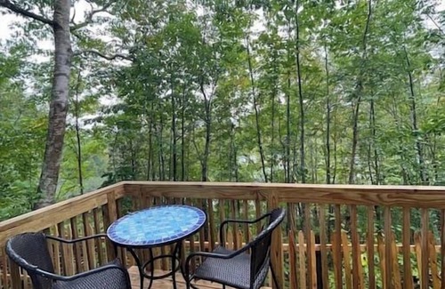 The cottage has a queen sized bed, a smart TV with Spectrum cable, kitchen island, private deck, WiFi, linens, Keurig coffee maker, barbecue grill, and outdoor fireplace.