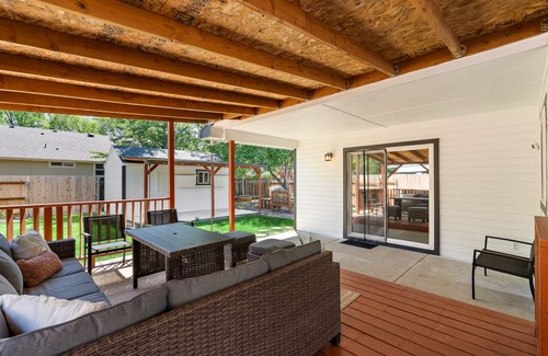 Your family will be close to everything when you stay at this cute and centrally-located home! There is a large open green space right beside the home that runs throughout the neighborhood and downtown Star is within a few minutes walk of the home. The backyard is great for family fun, BBQ'ing and hanging out. The beds are of the highest quality and the bedding is super comfy! 5 minute drive to the Boise River Green Belt!!