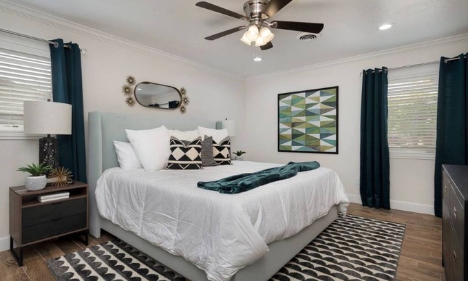 Your family will be close to everything when you stay at this centrally-located, stylishly designed home. Everything is brand new. The home is recently remodeled and stocked with everything you could possible need! Brand new cozy furniture, bedding, and mattresses, linens, and more!