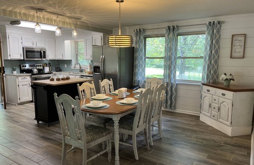 Forget your worries in this serene space. With a large backyard and firepit, it's the perfect ending to your busy day! Everything you need is provided for a home away from home, from the three separate bedrooms with fluffy towels and comforters to the well-equipped kitchen and large dining table. We hope you love our relaxing ranch as much as we do!