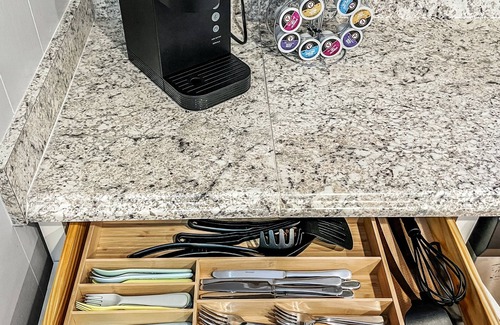 - a Fully Stocked Cabinet (with dishes, pots, and pans for your stay)