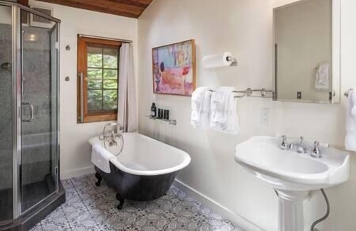 Sweetbrier Cottage is our cozy two bedroom, one bath getaway. Relax with the whole family at this local architect built home. Oak floors and ceramic tile in the kitchen with built-ins and granite counter tops, a full bathroom with a claw-foot tub and dual-head shower. With lots of amenities, this house is recently updated, inviting you in to enjoy a comfortable stay. A bonus loft and treehouse for fun (at your own risk), big yard, and 5 minutes from the village!