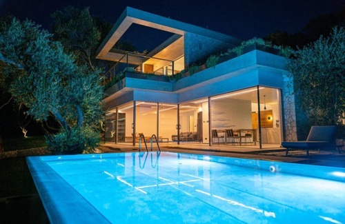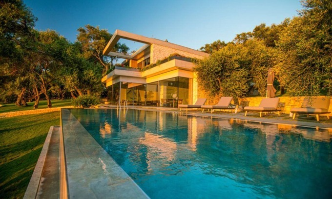 Luxury Villa Olives In The Sea is an exclusively designed villa that offers a perfect combination of elegance and modern facilities on the western coast of Corfu. The villa’s olive trees park gracefully hug the seaside, it’s the perfect place to play for children or just to read a book in the shadow of old trees. The main goal of the architect was to create a harmonious blend of comfort and nature. Nestled on the cliff, this idyllic escape provides a marvelous view of the natural wonder of breathtaking sunsets to the Ionian Sea.