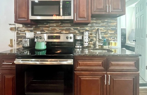 Experience New York like a local in this charming 1-bedroom apartment. The cozy space features a lovely king bed in the bedroom as well as a twin size bed in the alcove nook and two sofa beds (real mattresses) in the living room. Guests can freshen up in the bathroom with a shower and hair dryer. Stay comfortable with amenities like AC, heating, iron, and WiFi. Enjoy all that New York has to offer when you stay at our place.