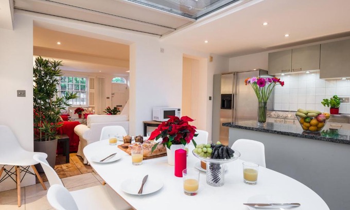 Just a 7-minute walk from Victoria and Albert Museum and 0.7 miles from Harrods, Chelsea London Town House features accommodations in London with a garden. Guests staying at this vacation home have access to free Wifi and a balcony. The property is a 5-minute walk from South Kensington Tube Station and within 1.9 miles of the city center. Providing a terrace and city views, the spacious vacation home includes 2 bedrooms, a living room, satellite flat-screen TV, an equipped kitchen, and 2 bathrooms with a bath and a shower. Towels and bed linen are provided in the vacation home. There's also a seating area and a fireplace. Royal Albert Hall is a 16-minute walk from the vacation home, while Natural History Museum London is 0.4 miles away. London City Airport is 11 miles from the property.