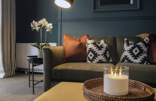 Cheltenham town centre sustainable serviced apartments. This two bedroom apartment on the first-floor features one bedroom with a king-size bed and ensuite shower room, a double bedroom, luxury linen and towels, a living room and a separate fully equipped kitchen with washer/dryer. Fast WiFi and Smart TVs. Free parking with EV charging points.Floor area 62 sqm