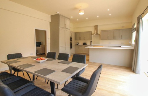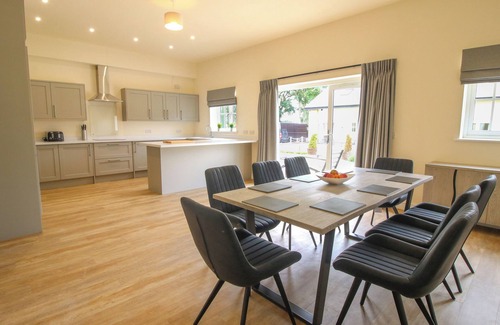 Cheltenham Cottage has a kitchen/diner with electric oven and hob, microwave, fridge, freezer, washing machine, dishwasher, a dining area with dining table seating eight guests and a breakfast bar, and a sitting room with Smart TV. The bedrooms consist of a king-size with en-suite walk-in shower, a king-size, a twin, and a ground-floor king-size with access to Jack-and-Jill wet room. There is a bathroom and a ground-floor Jack-and-Jill wet room. Outside, there is a front patio, a rear garden with patio and furniture, and communal gardens and off-road parking for two cars, plus additional parking in overflow car park. Highchair and travel cot available. One well-behaved dog welcome. Sorry, no smoking. WiFi, fuel, power, bed linen and towels are all included in the price. Choose Cheltenham Cottage for an idyllic stay in Shropshire. Note: There is a ramp up to property. Note: Dogs must be kept on leads at all times when outside as the garden is not secured. Please note: This property accepts stays with a minimum duration of 3 nights.