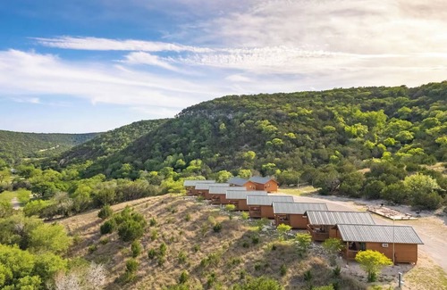 Perched high on a hill overlooking the gorgeous TX Hill Country sits the most stunning resorts you ever did see. With a mix of artsy touches, this space and resort is gorgeous. The suite is tucked into a pocket of nature surrounded by oaks, elms, and junipers. The cabin sits in front of the incredible sunset view across the hills. The resort amenities, include pool and hot tub, as well as hiking trails, are the icing on the cake!