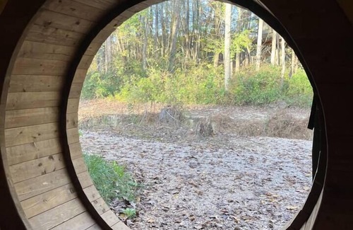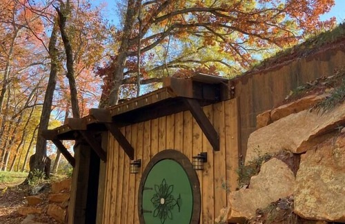 This is the 2nd "Hobbit House" on the Cherry Treesort property. It's a spacious 395 sq feet with a queen bedroom, circle door entry, living room with a queen sofa bed, and a full bathroom. The Hobbit House sits on 27 acres with the 8 other treehouses we have built. We also have a playground for kids and a 70 foot jump pillow for all to enjoy. Come stay in one of the most unique stays in the country, you wont be disappointed.