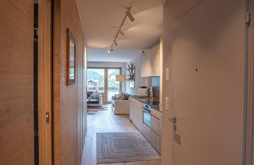 "Chesa Holiday Park - 13", 3-room apartment 70 m2 on 2nd floor. Spacious and bright, fully renovated in 2020, tasteful and cosy furnishings: living/dining room with panoramic window with TV (flat screen). Exit to the loggia. 1 double bedroom with 1 double bed (1 x 180 cm, length 200 cm), bath/WC. 1 small room, without window with 1 bed (90 cm, length 200 cm). Open kitchen (oven, dishwasher, 4 ceramic glass hob hotplates, toaster, kettle, microwave, freezer, electric coffee machine, Capsules for coffee machine (Nespresso) extra, steamer, raclette grill, fondue Set (chinoise, cheese)). Shower/WC. Heating. Wooden floors. Balcony furniture. Beautiful view of the mountains and the resort. Facilities: iron, hair dryer. Internet (WiFi, free). Garage space n 32 on the property (1 car), height 205 cm, width 225 cm. Please note: not suitable for small children. Non-smokers only, non-smoking house.