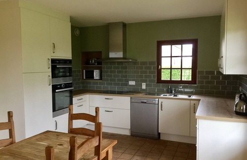 Our new fitted kitchen has modern appliances including one traditional oven, another oven/microwave combi-oven, induction hob, dish-washer and integrated fridge.