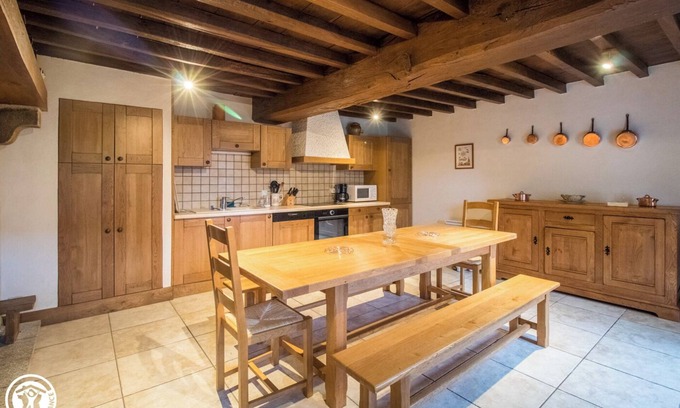 In a very quiet village in the heart of the Combrailles, stay in a beautiful independent house in exposed stone. On the ground floor: - a large kitchen-dining room with wood stove - a cozy living room - a separate toilet On the first floor: - a bedroom with a 140 bed and a 90 bed with private shower room - a bedroom with a 140 bed and a 90 bed - a separate toilet - a bathroom On the second floor: - a relaxation lounge/play area for children - a bedroom with three 120 beds. a superb adjoining and enclosed garden of more than 300m². A ping-pong table will delight young and old. Open garage. Many activities nearby: Puy de Dôme, Vulcania, Lemptegy volcano, Dauphin castle, Romanesque churches. And many hiking trails on site. This area is also very rich in waterways, the Sioule valley, many water activities and swimming in perspective within a radius of 15kms. The little extra: awareness of beekeeping with a visit to hives and possible handling on site!