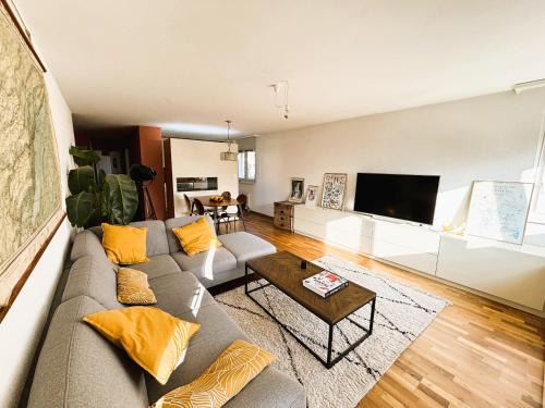 Providing a garden, Chez Camille & Sébastien provides accommodations in Bevaix. This property offers access to a balcony, free private parking, and free Wifi. Outdoor seating is also available at the apartment. The spacious apartment includes 2 bedrooms, a fully equipped kitchen with a dishwasher and an oven, as well as a coffee machine. The air-conditioned unit at the property features a bath and a dressing room. This apartment is non-smoking and soundproof. International Watch and Clock Museum is 19 miles from Chez Camille & Sébastien. Bern-Belp Airport is 42 miles away.