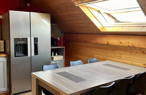 The kitchen has everything you need: dishwasher, American fridge, oven, induction hob, extractor hood, microwave. You will also find small appliances, including a coffee machine, kettle, raclette set, and more.