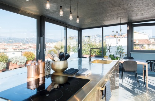 Stylish apartment with breathtaking rooftop terrace, right outside the city center at less than 20mins from the Cathedral by foot, 10/15 from the Galleria ell'Accademia and Piazza San Marco, accessible by car and well served by public transport at 900mt from the train station Campo di Marte. Private elevator. 4 BIKES AVAILABLE.