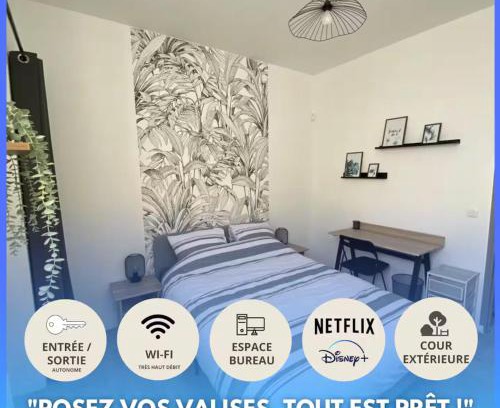 Chez Jules, appartement tout confort de 40 m2 offers accommodations in Denain, 17 miles from Douai Train Station and 17 miles from Train Station of Cambrai. This apartment features accommodations with a terrace. Free Wifi is available throughout the property and Valenciennes Train Station is 8.7 miles away. This apartment includes 1 bedroom, a living room and a flat-screen TV, an equipped kitchen with a dining area, and 1 bathroom with a shower and a washing machine. For added privacy, the accommodation features a private entrance. Ecole des Mines de Douai is 18 miles from the apartment, while Matisse Museum is 19 miles from the property. Lille Airport is 30 miles away.