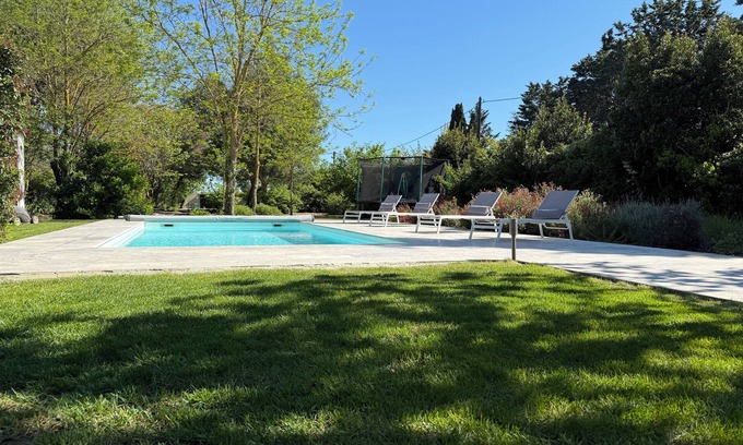 Relax in this quiet, elegant accommodation in the Narbonnaise countryside, a stone's throw from the Clape massif and 15 minutes from the sea and the Grands Buffets. Come and discover a lush 2000 m2 enclosed nature and enjoy with family, friends or as a couple a private 5-seater spa and a large swimming pool. At aperitif time you can relax with a game of pétanque while the children play the trampoline. We will welcome you for a vacation or a weekend all year round.
