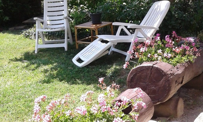 Garden with "patio" corner to relax after hiking in the mountains or read a good book.