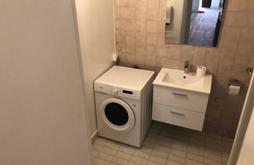 For your convenience, there's a coffee maker, a microwave, and cookware. Bathroom amenities include a hair dryer and towels. And because there's a washer and dryer, you can go a bit lighter on your packing. Other amenities at this 1-bedroom, 1-bathroom rental include bed sheets and an ironing board.