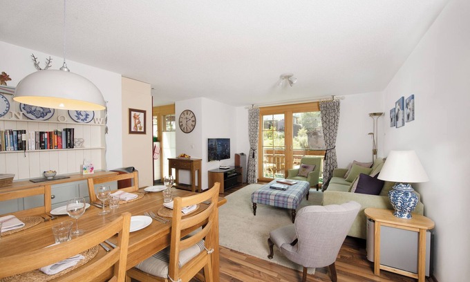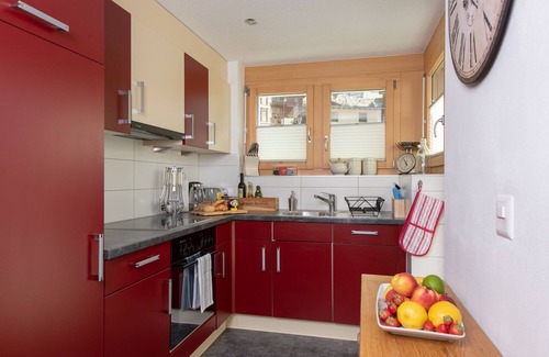 Great care has been taken to create a truly welcoming atmosphere: the pretty sitting room/dining room has a kitchen off it and a large wrap-around balcony that faces out to the field with the lovely old Swiss stadels in the foreground and the Matterhorn presiding in the background. The dining area comfortably seats 4-6 people so you can enjoy meals at home and then in the evenings (or on bad weather days) you can get cosy in front of the 45' home cinema system (with UK channels and Apple TV) watching a film or reading your book and when it is time to sleep the beds are super-comfortable. We also make sure that "the basics" are in stock so that you can make tea/coffee and have a glass of wine without having to go shopping straight away!
