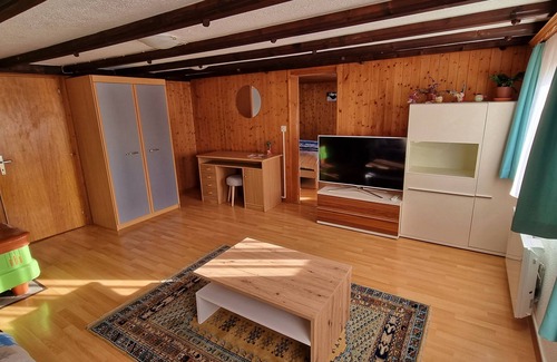 Appartement de vacances au coeur des Préalpes fribougeoises, avec une chambre parentale avec un lit double oudeux lits simples (aà présicer dans la réservation), un canapé-lit double au salon, une cuisine équipée et une grande salle de bains.