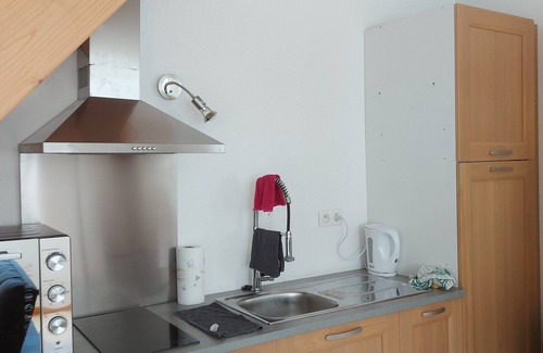 The kitchen is equipped with an oven, a stovetop, and a refrigerator, as well as a coffee maker, an electric kettle, and a microwave. Enjoy the WiFi and TV. Bathroom amenities include a hair dryer, towels, and toilet paper. Other amenities at this 2-bedroom, 1-bathroom rental include a sofa bed, bed sheets, heating, and a dining table.
