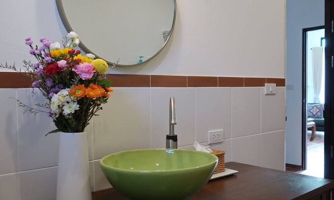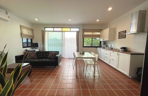65 sqm one bedroom Lanna style cottage located in quiet, no exit soi. Beautifully appointed & comfortable with private access & off street scooter parking. Easy for work or relaxing. 15 minutes from the Old City & airport. Thai owner Nina, fluent in English and her kiwi partner Marty. Close to local markets, Muay Thai gym, restaurants, cafes & pharmacies. Queen bed with Sealy mattress, luxury bathroom, modern kitchen, washing machine. Netflix, fast wifi. Free bicycle & Weber bbq available.