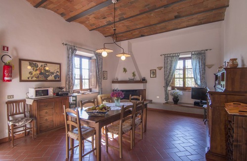 Our Chianti Farmhouse is a portion of a large farmhouse a typical example of traditional old Tuscan peasant houses that has retained its original features: stone facades, terracotta floors, ceilings with arches and exposed wooden beams, plus a truly spacious and cool kitchen and living room.
