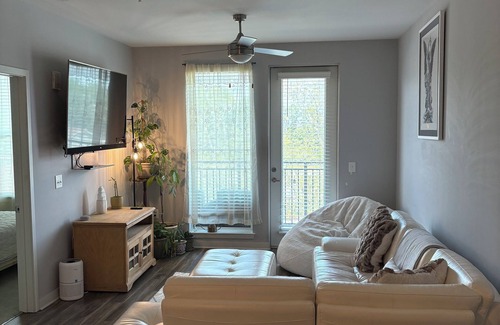 Located in Sandy Springs, this delightful apartment features a cozy bedroom with a king bed, a relaxing bathtub in the bathroom, and convenient amenities like a fitness room, heating, and AC. Perfect for solo travelers or couples looking for a soothing retreat. We hope you enjoy what our place and Sandy Springs has to offer.