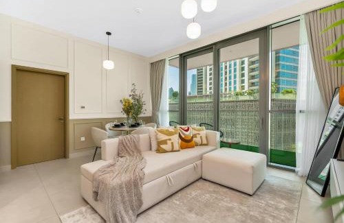 A 12-minute walk from Dubai Mall in Dubai, Chic 1BR in Downtown Dubai-Direct access to Dubai Mall provides accommodations with access to a fitness room. This apartment features air-conditioned accommodations with a patio. There's a picnic area and guests have access to free Wifi, free private parking, and an electric vehicle charging station. Featuring a balcony and garden views, the spacious apartment includes 1 bedroom, a living room, flat-screen TV, an equipped kitchen, and 2 bathrooms with a bath and a shower. Towels and bed linen are offered in the apartment. The property has an outdoor dining area. A mini-market is available at the apartment. In addition to a year-round outdoor pool, the apartment also offers kids pool. Burj Khalifa is a 15-minute walk from Chic 1BR in Downtown Dubai-Direct access to Dubai Mall, while The Dubai Fountain is 1.1 miles from the property. Dubai International Airport is 7.5 miles away.
