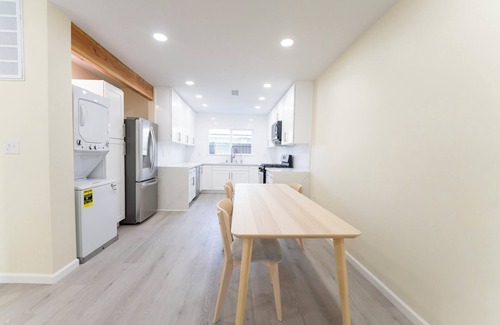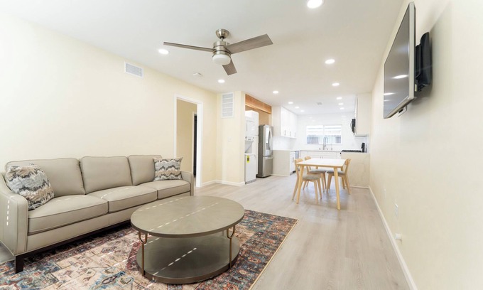 Stay comfortably in Downey at this 2-bedroom apartment. The space features 2 queen beds, a cozy living area, and a well-equipped bathroom with a bidet and bathtub. Remodeled 1950s Downey apartment blends traditional charm with modern updates. Open concept living, gourmet kitchen (quartz counters, stainless steel appliances), spa-style bath, and spacious bedroom. Smart home features, in-unit laundry, custom closets, and purified water. Energy-efficient upgrades and convenient location near schools, parks, shops, and transportation. About a 30-Minute from all Major Attractions such as Disneyland, DTLA, LAX. Our house is full of character. We know you'll fall in love with this place once you see it. Relax in this fabulous and beautiful retreat during your travels. We're happy to assist with any questions while you stay at our apartment.