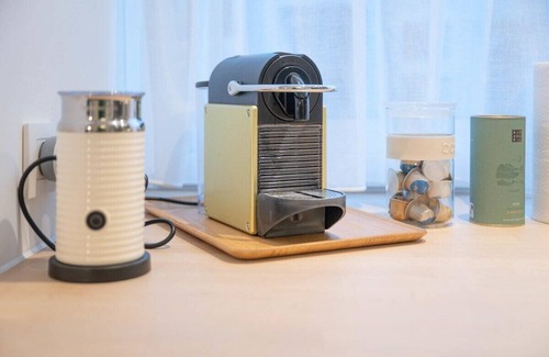 Step into a haven of modern comfort with our thoughtfully designed living space. The living room, adorned with a TV and a high-quality stereo system, is a cozy retreat for relaxation and entertainment. The kitchen, equipped with a Falcon stove, hides a dishwasher in its storage space, ensuring seamless meal preparations. Additional amenities include a microwave and a coffee maker, catering to your culinary needs.