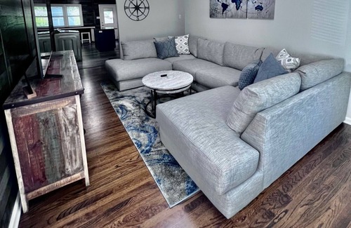Our large spacious kitchen includes many items need to feel at home during your stay, such as: Microwave, Keurig with coffee, creamer and sugar, utensils, pots/pans, dishes, silverware, cutting boards, baking sheets, paper towels, toaster, kettle, and so much more.