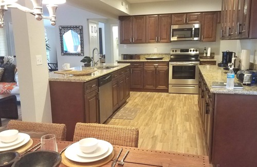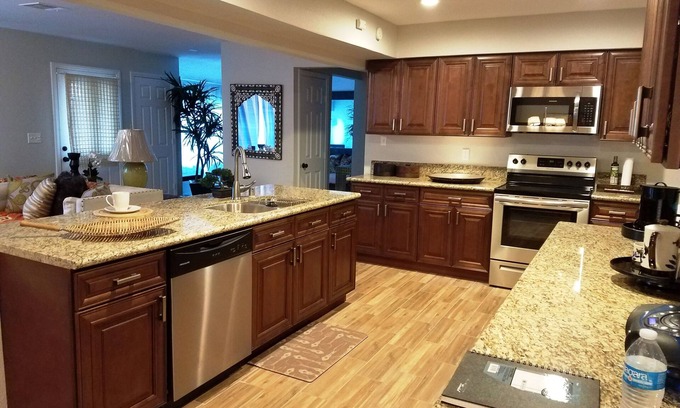 - Chef's Kitchen: Make memorable meals together in the open-concept kitchen, featuring stainless steel appliances, granite countertops, and ample pantry space, ideal for hosting pre-wedding celebrations or intimate family dinners.