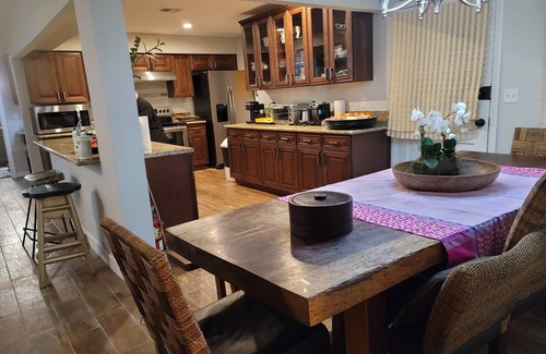 The Chic 4Bdrm+Den, 3bath 6BEDS Private Pool near Strip, UNLV, Stadium & Airport is an exceptional choice for your wedding stay, blending luxury and comfort in a capital location. This fully furnished home offers ample space and amenities that cater to your every need during this special time.