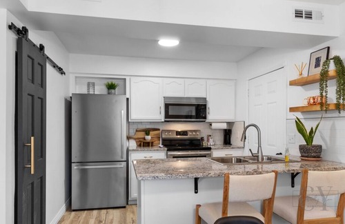 This stylish and contemporary home is designed with business travelers and vacationers in mind, offering a perfect blend of comfort and convenience. Free high-speed Wi-Fi is available throughout the property. The two tranquil bedrooms feature plush beds, premium linens, and ample storage space, providing a peaceful sanctuary to rest and recharge. The shared bathroom boasts modern fixtures and complimentary toiletries.